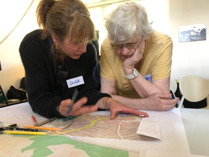 Les questions qu’elles et ils se sont posées sont : qu’est-ce qu’on pourrait changer en ville, pour améliorer la mobilité des seniors ? Quels sont les plus gros obstacle à nos déplacements ? Qu’est-ce qu’on pourrait imaginer comme solution ? Et quelles sont les choses qui favorisent déjà l’accueil de différents rythmes et différents handicaps dans l’espace public ?